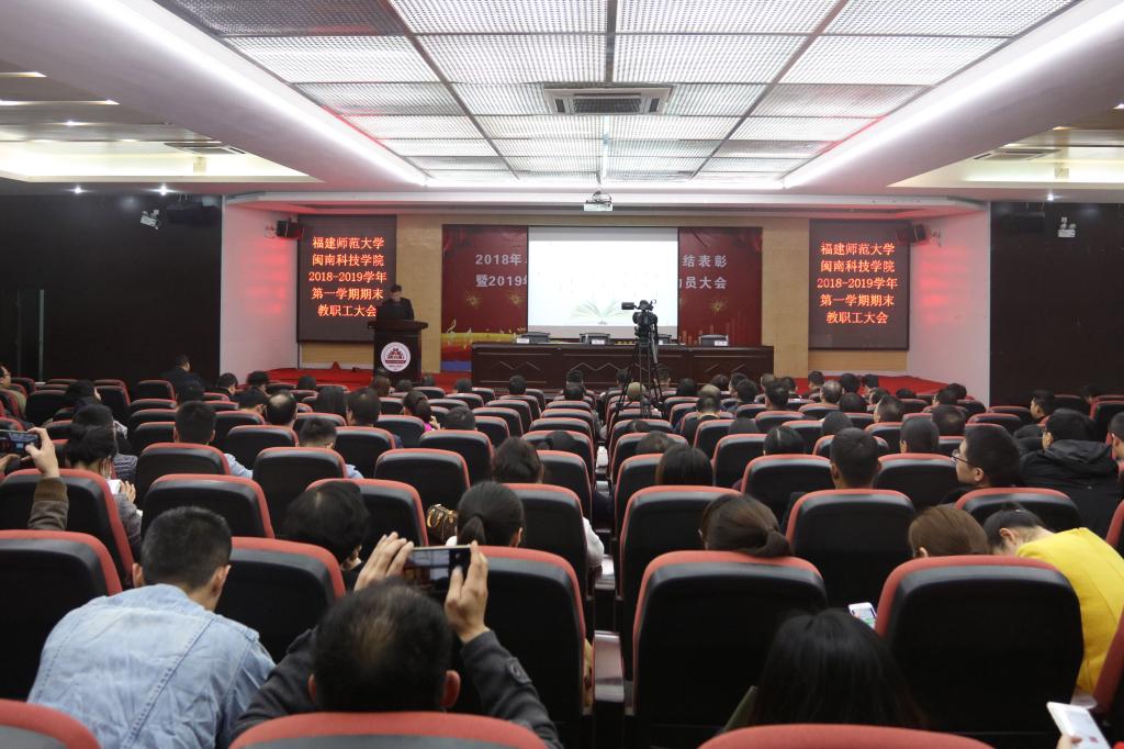 会上,学院党委副书记、副院长(主持工作)张杰作《筑牢 强化 聚焦 扎实推进新闽科应用型发展》工作报告。报告围绕“四个‘筑牢’,创新加强新时代党建思政”“四个‘聚焦’,扎实推进应用型人才培养”“四个‘强化’,努力打造高质量教工队伍”等主题,总结本学期学院党建工作、思政课程教学、意识形态工作、校园文化建设等工作成效,解读学院发展规划、改革创新、产教融合、服务地方能力、教师队伍建设等实际举措。他表示,本学期学院深入学习贯彻习近平新时代中国特色社会主义思想和党的十九大精神,深入学习贯彻全国全省高校思想政治工作会议、全国教育大会精神,在福建师范大学党委和董事会的领导下,团结和依靠全院师生,紧紧抓住转设为独立设置的民办普通本科高校的机遇,聚力攻坚,跨越前行,较好地完成了2018年初和本学期初确定的目标任务,2018年11月,教育部正式发函,同意福建师范大学乐鱼(中国)官方顺利转设为乐鱼(中国)官方,学院在创建具有侨乡特色、在海峡两岸具有一定影响的高水平应用型民办本科高校的伟大征程中阔步迈进。