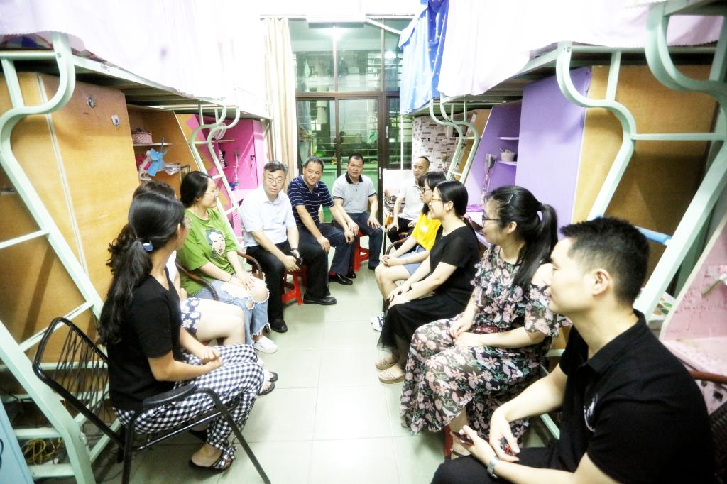 6月20日晚,院领导张杰、周勇军、林树生在相关职能部门负责人、各二级学院党总支副书记和毕业班辅导员的陪同下,分别前往兰苑毕业生宿舍,为即将踏上人生新征程的毕业生们送去离别前的关怀与祝福。