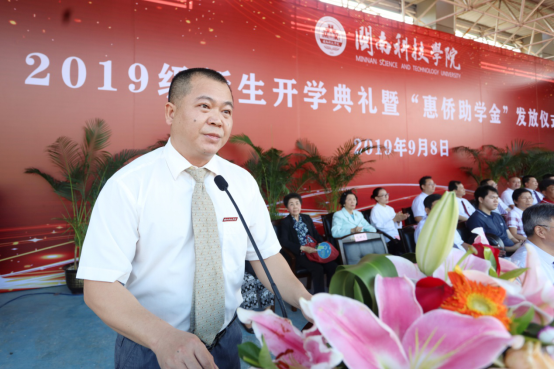 9月8日上午,我校2019级新生开学典礼暨“惠侨助学金”发放仪式在雄壮的国歌声中拉开了序幕。福建省侨联副主席张瑶,省侨联联谊联络部科长林武;南安市委常委、政法委书记张瑞平,市教育局局长黄清地;学校董事长戴宏达,名誉董事长林国端、苏世选,副董事长陈光曦,校领导张杰、周勇军、戴景星、吴勇、林树生,董事会全体成员、各二级学院、各职能部门负责人及2019级全体新生出席大会。大会由学校校长助理、学工部部长林树生主持。
