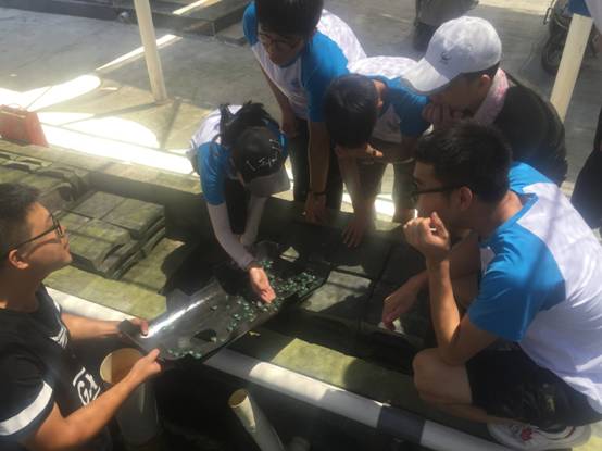 7月6日,实践队走进东山县“山石”鲍鱼养殖场以及福建三马水产养殖有限公司海马养殖基地,调查鲍鱼、海马的生长周期、生长环境以及产品宣传、销售方式和渠道。