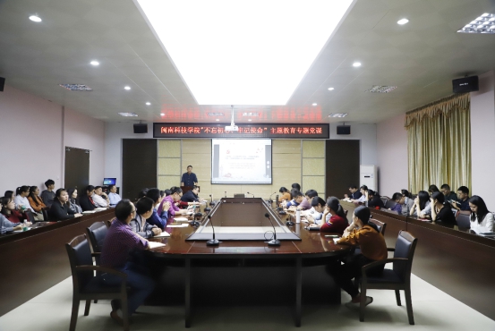 11月12日下午,我校在图书馆评建办举办“不忘初心、牢记使命”主题教育专题党课,校党委委员、副校长吴勇以《教书育人守初心 立德树人担使命》为题作报告,所分管职能部门负责人和所联系二级学院师生党员到场聆听。专题党课由校纪委委员、党工部部长陈碰仔主持。