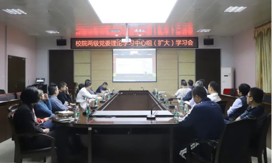 11月11日下午,我校举行校院两级党委理论学习中心组(扩大)学习会。校领导李旭、周勇军、吴勇,全体中层干部及各二级学院党总支书记、副书记参加学习会。