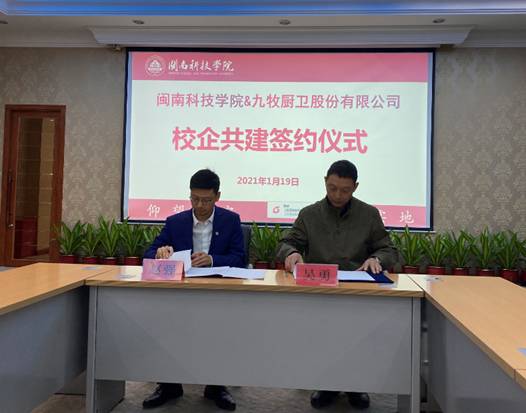 1月19日上午,我校与九牧厨卫股份有限公司在九牧体验中心馆会议室举行校企共建签约仪式,九牧电商事业部总经理赵强、学校副校长吴勇出席签约仪式,商学院、创新创业学院负责人和相关教师参加活动。