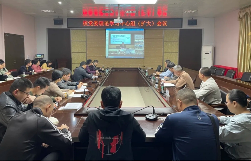校领导游小波、李旭、周勇军、吴勇、林树生,校党委委员,各职能部门负责人,各二级学院党政主要负责人,直属党支部书记到场收听收看。