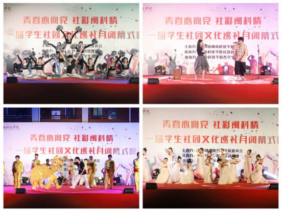 晚会分为“百年砥砺秉初心”“守正创新谱华章”“风劲扬帆再起航”三个篇章,结合啦啦操、歌舞、说唱、话剧、武术、现场书法等多种形式,表演了12个精彩纷呈的节目。歌曲串烧《纸短情长》和《别找我麻烦》唱响青春旋律;舞棍《风华少年》展现了中国武术的刚柔并济;体育竞技表演《花样年华》展现了永不服输、团结奋斗的体育精神;朗诵《永远跟党走》讴歌了中国共产党百年辉煌成就;话剧《黎明的曙光》再现新中国成立的艰辛历程,赞颂新时代美好生活……整场晚会情景交融,掌声不断,高潮迭起,展现出我校社团文化繁荣蓬勃的生命力和青年大学生向上向善的青春风采。