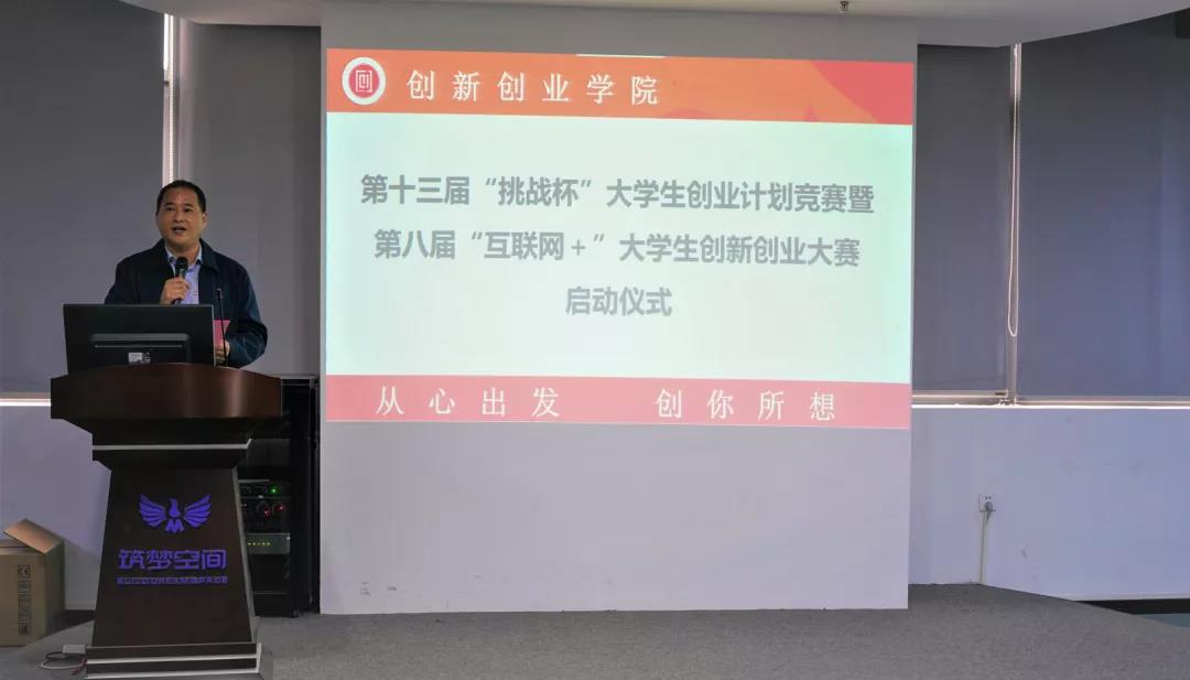 11月17日下午,我校第十三届“挑战杯”大学生创业计划竞赛暨第八届“互联网+”大学生创新创业大赛举行启动仪式。校领导游小波、周勇军出席活动。