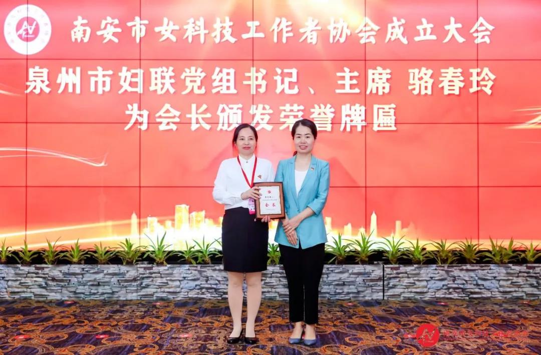 泉州市妇联党组书记、主席骆春玲为戴玉梅会长颁发荣誉牌匾