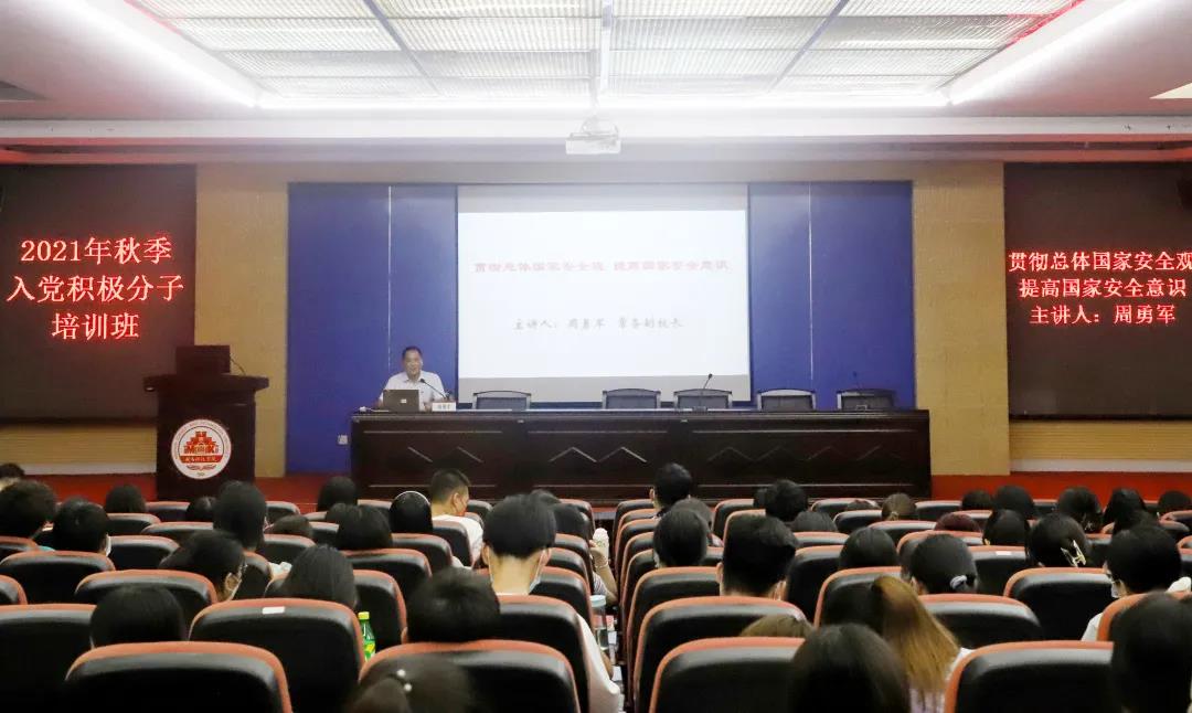 10月13日下午,校常务副校长周勇军以《贯彻总体国家安全观 提高国家安全意识》为题,为我校2021年秋季入党积极分子培训班上主题党课。