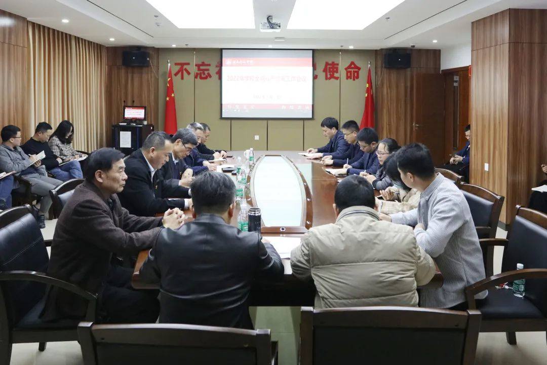 校党委书记李旭就做好校2022年度全面从严治党工作作了讲话和部署。他指出,过去一年,校党委以习近平新时代中国特色社会主义思想为指导,压紧压实全面从严治党主体责任和监督责任,抓组织强阵地,抓学习强队伍,抓制度强保障,抓作为强担当,党建工作水平不断提高,基层党组织战斗堡垒作用和党员先锋模范作用得到有效发挥,为学校事业健康发展提供了更加有力的政治、思想、组织和纪律保证。他强调,2022年是党的二十大召开之年,也是学校迎接本科教学工作合格评估和实施“十四五”规划承上启下的重要一年。全校各级党组织和广大师生要提高政治站位,筑牢全面从严治党的思想堤坝;要强化政治担当,健全全面从严治党的工作体系;要落实政治责任,抓好全面从严治党的关键少数,深入学习贯彻党的十九大和十九届历次全会精神,弘扬伟大建党精神,永葆自我革命精神,以坚如磐石的决心和坚不可摧的意志纵深推进全面从严治党,切实为学校发展建设提供坚强保证,以实际行动迎接党的二十大胜利召开。