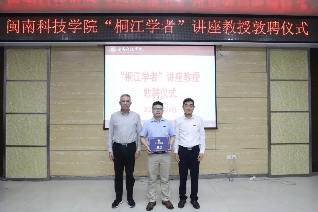 敦聘仪式上,校长游小波为林启普教授颁发聘书,校党委书记李旭为林启普教授佩戴校徽。