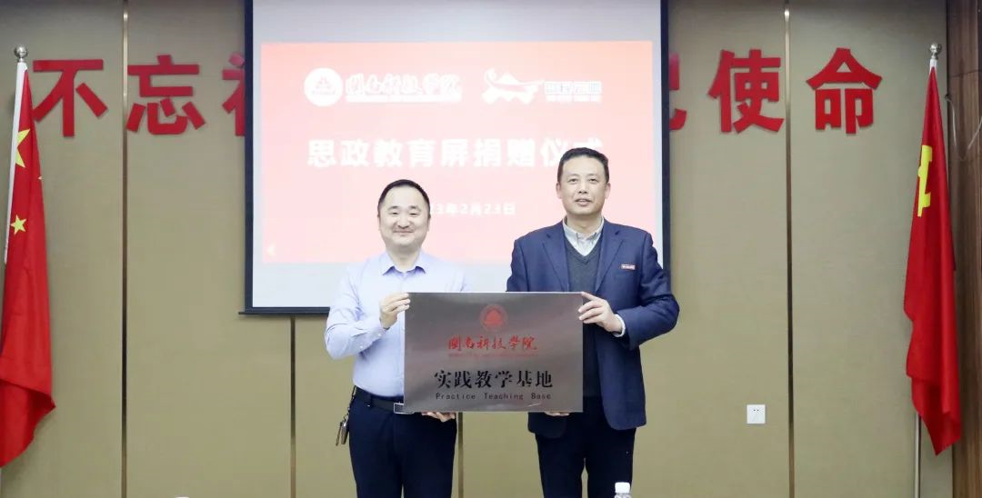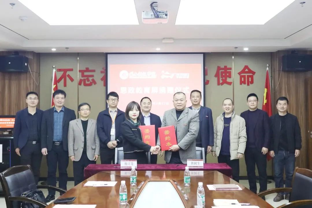“百校千屏”思政教育屏捐赠活动由福建创智联盟数字教育科技有限公司联合福建富民云咖集团共同发起,分别提供设备和耗材,福建创智联盟数字教育科技有限公司是海峡出版发行集团旗下全资子公司。此次捐赠的思政教育屏将服务于全校师生,开辟了校内的思政宣传教育新阵地。校企双方共建实践教学基地,将积极打造“党建+思政+产教融合+平台”模式,整合校企资源,共建产学研合作。