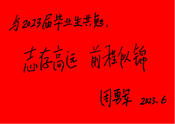 常务副校长周勇军为2023届毕业生寄语题词