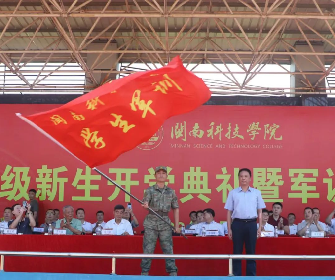 9月10日上午,我校2023级新生开学典礼暨军训动员大会在康美校区隆重举行。军训承训部队副政治教导员张彬松,学校董事长林国端、法人代表戴林亚燕、副董事长戴宽南、原名誉董事长苏世选、原副董事长陈光曦、董事戴宏博等,校领导游小波、李旭、周勇军、林树生、邱永渠,校长助理王育海,各行政职能部门负责人、各二级学院院长书记出席典礼,2023级新生、新生辅导员及师生代表参加典礼。典礼由校党委副书记林树生主持。