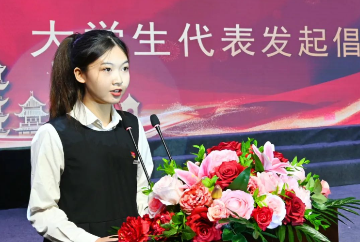 学生代表姚冬梅同学发起倡议。号召同学们坚定理想信念,勇于担当作为,立即行动起来,积极投身大学生社区实践活动,守正笃实,久久为功,用实际行动书写新时代的青春故事。